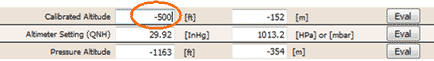 Enter -500 on the calibrated altitude in ft that is known for location 1.