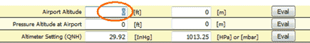 Begin by highlighting the field that corresponds to airport altitude in ft.
