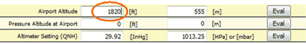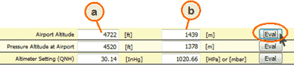 The remaining field is the airport altitude. Press "Eval" and read the answer 4722 ft on (a). You also get a result in meters in (b).