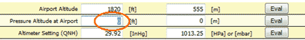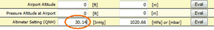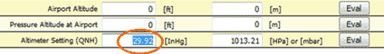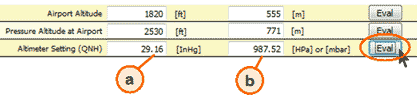 The remaining field is the altimeter setting. Press "Eval" and read the answer 29.16 inHg on (a). You also get a result in HPa or mbars in (b).