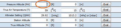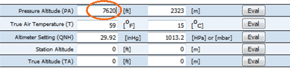 Begin by highlighting the field that corresponds to pressure altitude in ft.