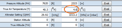 We have four of the five variables for the calculator, the remaining being true altitude, and therefore we have enough information to solve the problem using our second calculator. We will now enter the variables we have: