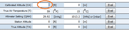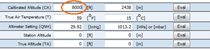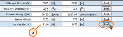 The remaining field is the true altitude one. Press "Eval" and read the answer 8114 ft on (a). You also get a result in meters in (b).