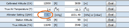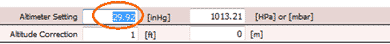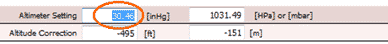 Highlight the field that corresponds to the altimeter setting in inHg.