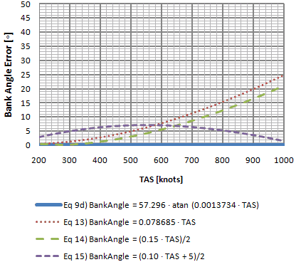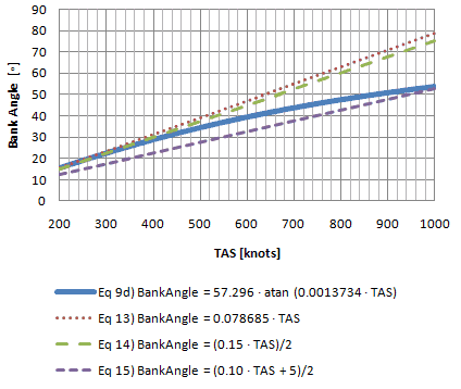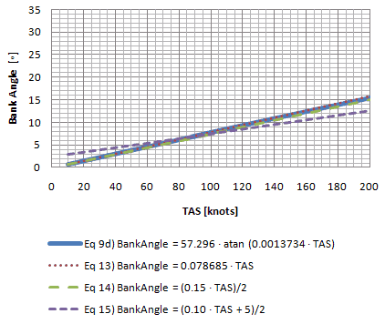 Bank Angle = 57.296 · atan (0.0013734 · TAS) |