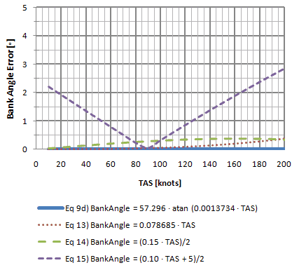 | Bank Angle Equations for ½ Standard Rate Turn |
