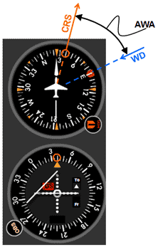 Figure 5 shows how to visualize the above scenario's AWA on an analog and digital HSI. If for some reason the heading bug is being used for something else the pilot can make a mental note of where the wind is instead. Having a general idea of the wind is crucial to smooth and accurate navigation.