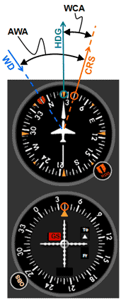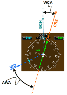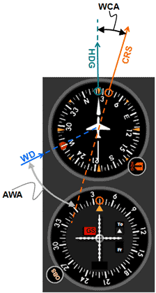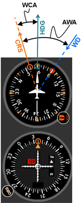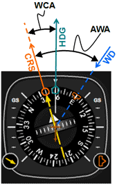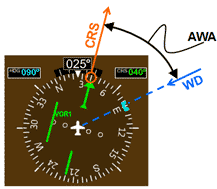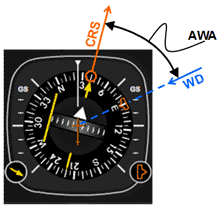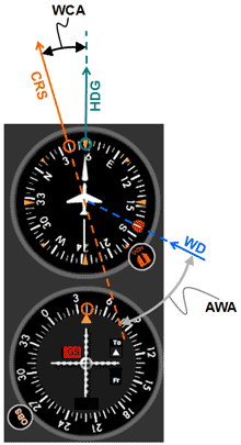 Visualizing the wind correction angle (WCA) once established on the course (CRS)