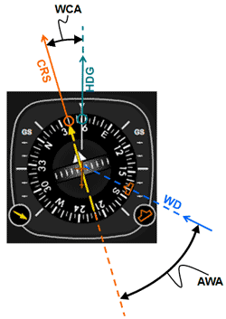 During flight the pilot will need to visualize where the wind is in relation to the aircraft's heading and course. The following are a few suggestions on how to do this and figure out what the AWA is.