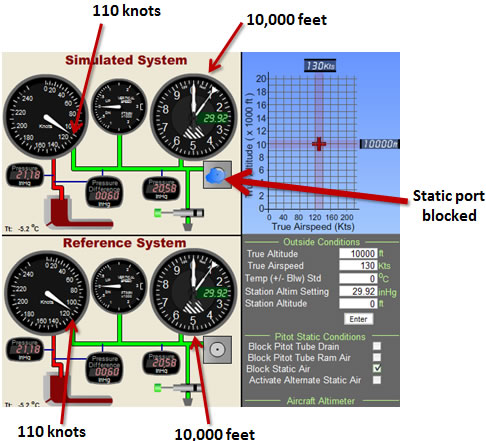 Fig 4-1 Static port gets blocked at an altitude of 10,000 feet and 130 knots.