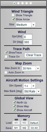 Trace On: when enabled, the path that the aircraft is taking will be recorded in memory. Please note that if you have a slower computer this might cause the simulator to significantly lose performance.