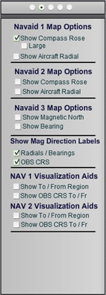 Show OBS CRS To/Fr: when NAV 1 is tuned to a navaid, this option selects whether a line will be drawn through the navaid showing the OBS CRS to and from that navaid. |