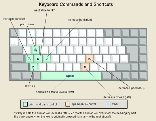 ** if key is held the aircraft will level at a rate such that the aircraft will overshoot the heading by half the bank angle when the key is originally pressed (similarly to the real aircraft)